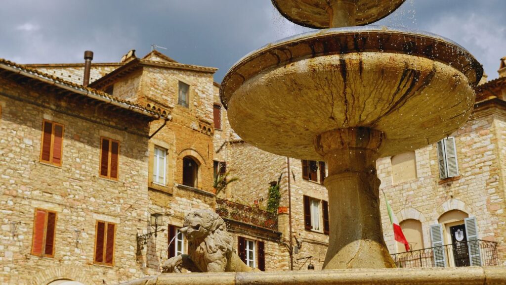Centralny plac Asyżu, tętniący życiem, od wieków był miejscem spotkań, handlu i procesji. Otoczony przez ratusz, świątynię Minerwy oraz zabytkowe budynki miejskie, Piazza del Comune zachował układ urbanistyczny z czasów rzymskich.
