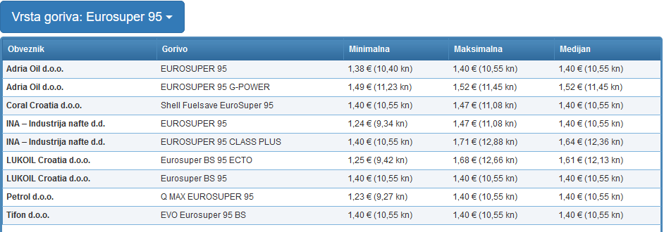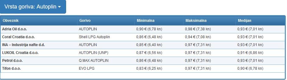 Aktualna cena paliwa w Chorwacji uzależniona jest od lokalizacji oraz od stacji benzynowej. Zresztą ceny paliw mogą się różnić na poszczególnych stacjach w zależności od polityki cenowej firmy. W zestawieniu prezentujemy najniższe oraz najwyższe ceny paliw dla konkretnej stacji. Warto także wiedzieć, że najwyższe ceny są zwykle na stacjach przy autostradach oraz drogach największego ruchu. Polecamy śledzenie cen i stacji z najtańszym paliwem, które można wyświetlić na interaktywnej mapie HAK oraz aplikacjach mobilnych HAK. Dodatkowo członkowie HAK mają zniżkę na stacjach BP Tiffon oraz Crodux.