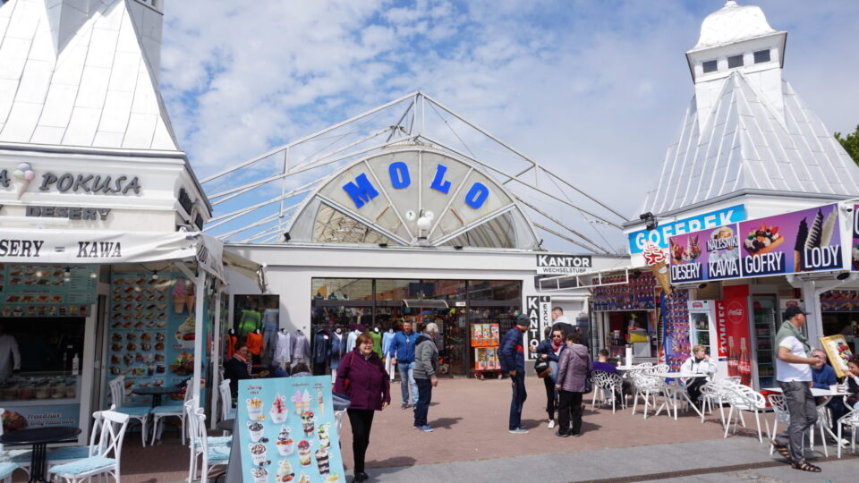 Molo w Międzyzdrojach ma długość 395 metrów. Jego historia sięga 1885 roku, co więcej na jego końcu cumują statki wycieczkowe. Jest to symbol miejscowości oraz ciekawe miejsce dla całych rodzin. Znajdziemy tu kilka punktów gastronomicznych z goframi, kawą oraz z pamiątkami. Na molo jest również sporo ławeczek z których możemy podziwiać panoramę Bałtyku.