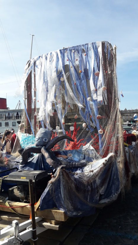 Jedni niosą transparenty, inni grają na bębnach. Czasem można odnieść wrażenie, że uczestnicy rywalizują o to, kto wymyśli coś bardziej szalonego. Na końcu parady pojawia się król karnawału i jego dama, a zaraz po nich – barwna orkiestra, która prowadzi tłum aż nad nabrzeże.