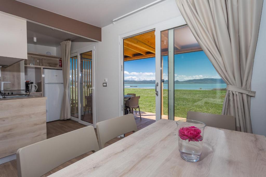 Camp Vransko lake – Mobile homes to doskonała opcja dla tych, którzy chcą połączyć kontakt z naturą z wygodą. Położony tuż przy brzegu jeziora, oferuje nowoczesne, klimatyzowane domki mobilne z tarasem i widokiem na wodę. Każdy domek posiada aneks kuchenny, łazienkę i część wypoczynkową. Na terenie kempingu znajduje się restauracja, bar, plac zabaw i wypożyczalnia rowerów. To świetna baza dla rodzin, wędkarzy i miłośników sportów wodnych, którzy chcą spędzić czas w otoczeniu przyrody. Ceny wahają się od 70 do 130 € za noc w zależności od sezonu i liczby osób.