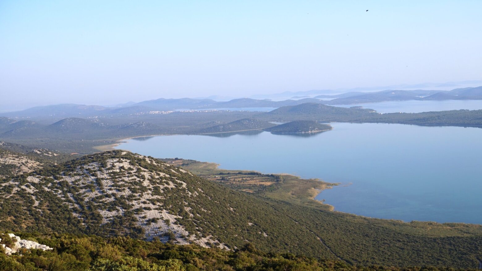 Droga jest wystarczająco szeroka, aby zmieściły się na niej rowerzyści i auta, jednak pomimo kilku turystów na trasie i lokalnych mieszkańców nikt nie będzie przeszkadzał nam na drodze. Zdecydowanie polecamy odwiedzić punkt widokowy Kamenjak, który znajduje się tuż nad środkową częścią jeziora. Zapewnia spektakularne widoki na cały park krajobrazowy jeziora, wyspy Kornati, Pakoštane, Murter, Pašman…ale o tym nieco później 🙂