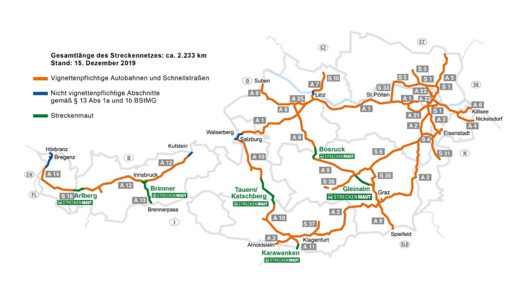 Na terenie Austrii funkcjonują trzy systemy opłat drogowych umożliwiających korzystanie z sieci dróg szybkiego ruchu i autostrad: