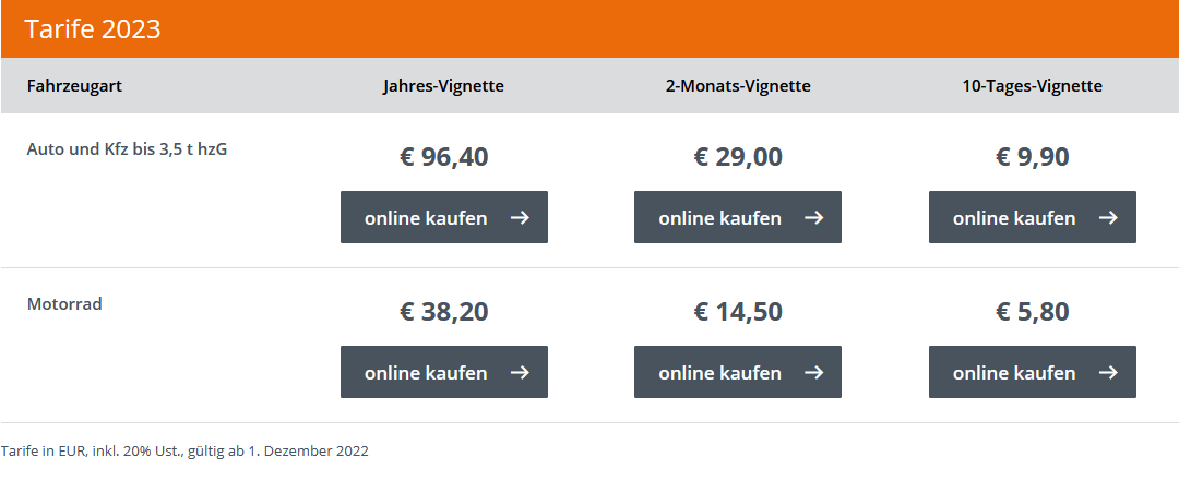 Powyższe ceny winiety Austria są oficjalnymi cenami obowiązującymi na terenie Austrii.