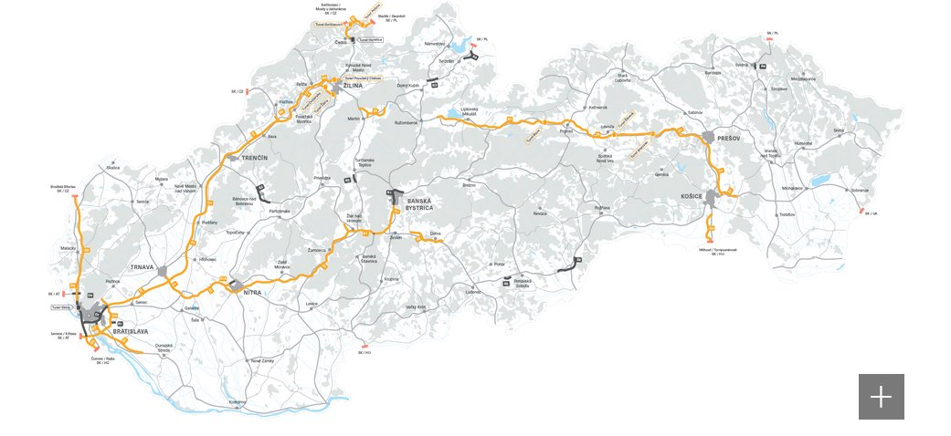 Winiety na Słowacji nie są obowiązkowe. Są one niezbędne jeśli chcemy poruszać się autostradami oraz niektórymi drogami szybkiego ruchu. Łącznie na Słowacji znajduje się 633 km płatnych dróg. Na poniższej mapie zaznaczone zostały odcinki dróg, gdzie wymagana jest winieta.